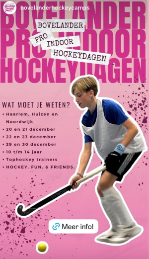 Op zaterdag 20 en zondag 21 december vindt er weer een Bovelander zaalhockey kamp plaats in Sporthal Lageweg (SJC) voor iedereen van 10-14 jaar.
